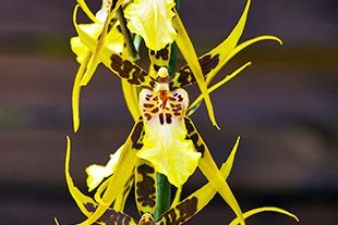 L’Orchidée Brassia est aussi appelée « orchidée araignée » en raison de ses fleurs fines et longues. Les fleurs sont souvent beige et vertes avec des tâches de couleurs brune. Les Brassias sont présentes dans toute l’Amérique du Sud, sur de nombreuse îles des Antilles et jusqu’au Mexique. Cette orchidée est une plante vivace épiphyte, c’est-à-dire qu’elle vit dans son milieu naturel accrochée aux arbres.